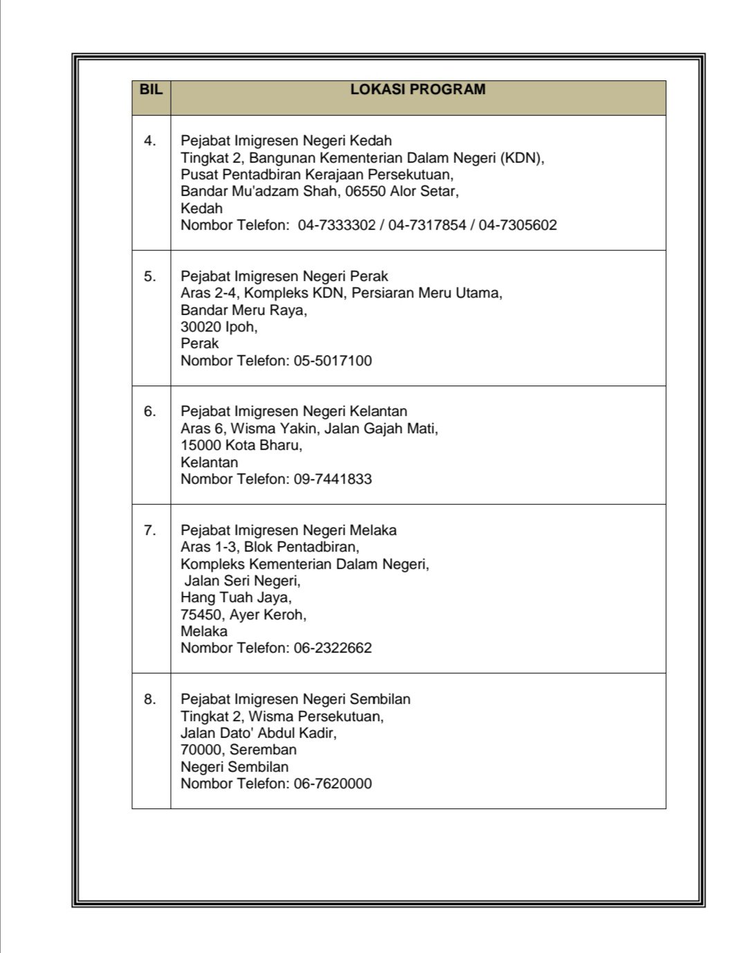 No telefon pejabat imigresen ipoh. Jabatan Kastam Diraja Malaysia Kompleks Kementerian Kewangan No 3 Persiaran Perdana Presint 2 62596 Putrajaya 1300 888 500 Pusat Panggilan Kastam 1800 888 855 Aduan Penyeludupan 03-8882 21002300 Ibu Pejabat email protected Pegawai penguat kuasa agama peringkat negeri mempunyai kuasa untuk menguatkuasakan beberapa aspek. Tuan rumah yang mahu sewakan atau jualkan rumah di Ipoh dibenarkan untuk mengiklankan iklan anda di sini. Johor Bahru to Ipoh.