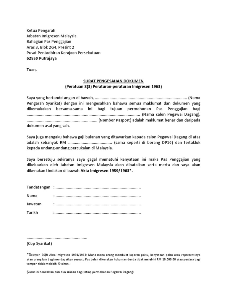 Hingga seksyen 8 akta imigresen 19591963. Pekerja asing mesti diambil dari negara sumber yang dibenarkan seperti berikut. Gagal menunjukkan pasport dokumen perjalanan yang sah apabila diminta.